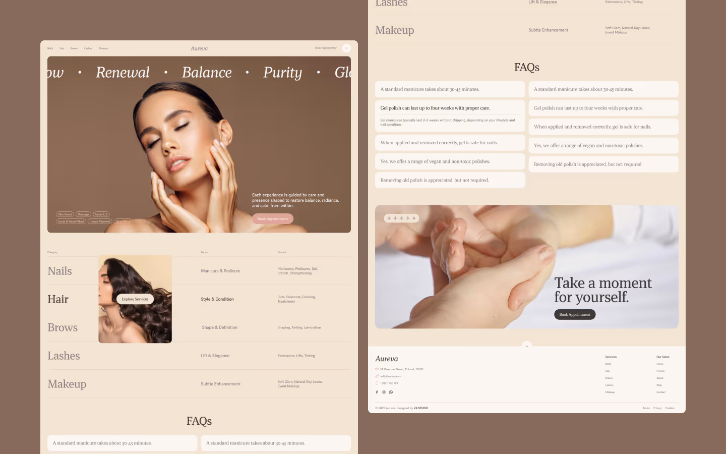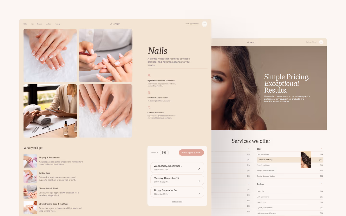 Aurvera is a ready-to-launch digital system built for beauty salons and self-care spaces that want to look refined and operate smoothly from day one.