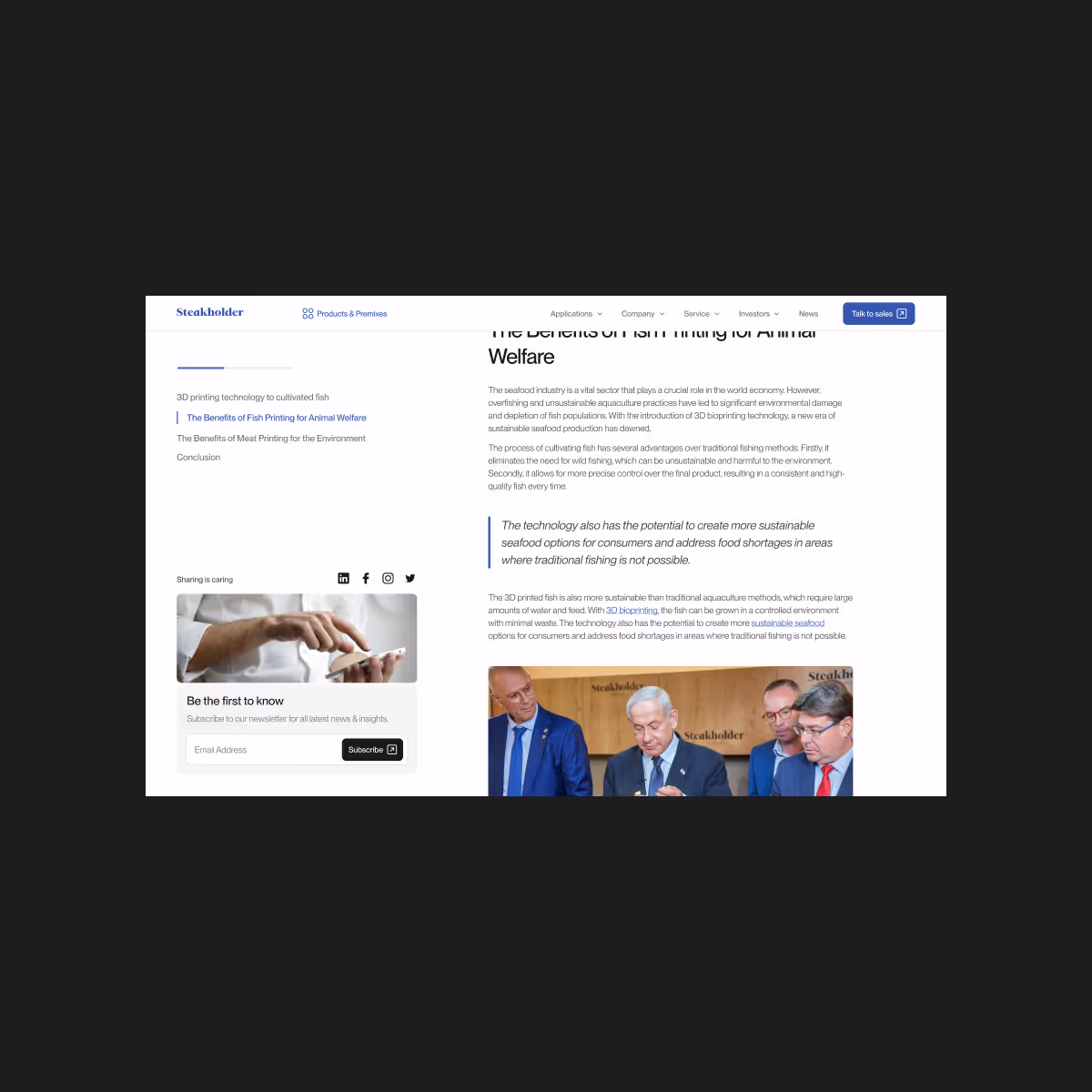 On the digital front, we designed and developed a multi-page website that seamlessly presents Steakholder’s technology. Through captivating animations, interactive elements, and a streamlined UX, the website not only enhances brand perception but also provides a tangible showcase of Steakholder’s groundbreaking work.